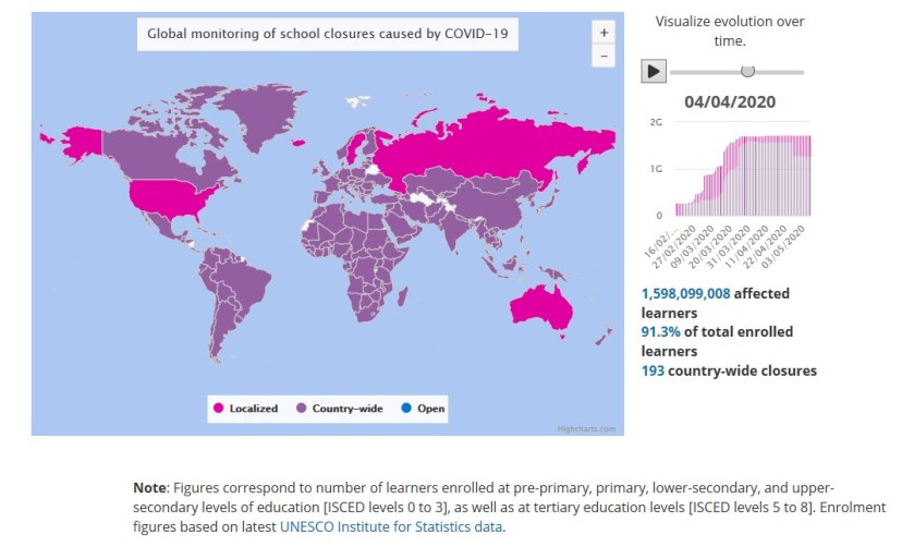 The learning curve has been steep for everyone in the past three months. Policymakers, practitioners, students, and their families struggle to respond to a rapid shift in the paradigm of schooling caused by the spread of the novel corona virus. UNCESCO published a time lapse graph of school closures showing over 91% of learners, 193 countries, and nearly 1.6 billion learners affected worldwide. Scroll down this link to find your place in the common experience of education disrupted: https://en.unesco.org/covid19/educationresponse